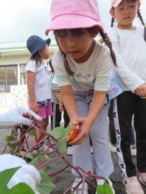年長さんは、さつまいもの収穫前の下準備もしましたよ☆
