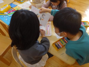 進級に期待を持ちながらお友達との遊びの中で相手の気持ちを考えたり、苦手な食べ物にも挑戦する姿が見られています(*^^*)