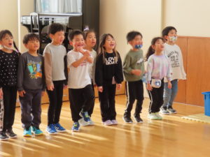 お片付けをした後、年中組・年長組は”おおかみさん今何時?”をしました。