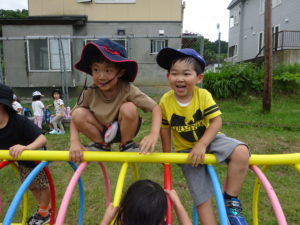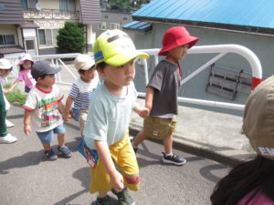 年中・年長さんは赤岩公園まで行ってきました!帽子でちょうちょを捕まえようと走り回っている子や、遊具でお友だちと遊ぶ子、鬼ごっこをして汗をかきながら遊ぶ子など、みんなで楽しみました(*^^*)