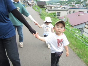 お天気が良かったのでお散歩に行ってきました!年少さんは初めてのお散歩(*^^*) 旧手宮幼稚園の方まで頑張って歩きましたよ!