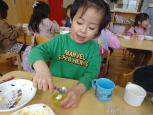 作っている途中から幼稚園の中にはごちそうのいい匂い…♡