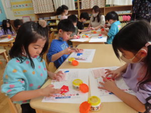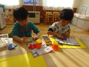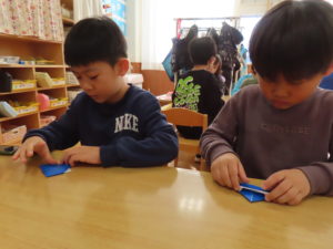 みんなで先生の話をよく聞いて、毎月折り紙を折っています。