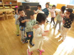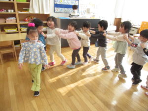 また、クラス活動ではわらべうたで楽しんだり、ブロックやラキューなどで遊んで過ごしています(*^^*)