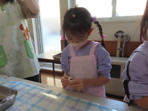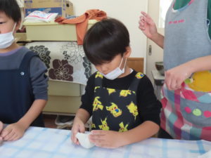 年長さんはあんこを包み、自分の大福を作りましたよ(*^^)v