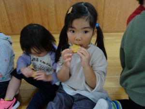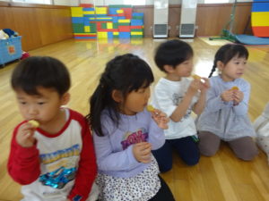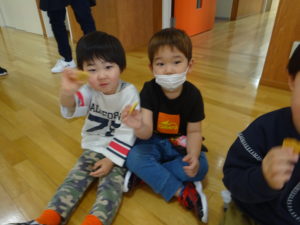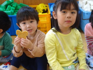 「まだたべた~い!」「もうないの~?」とお口にクッキーをたくさん詰め込みながら食べていました( *´艸`)