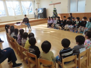 年長組のお友だちは、サンタさんに手紙を書いた子、書こうとしている子がいて、「クリスマスまだかなあ?ページェントもサンタさんもいっぱい楽しみがあるな~」とお話していました☆