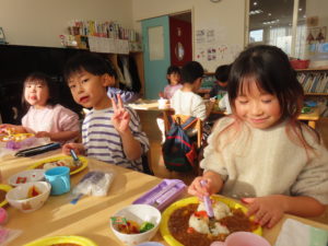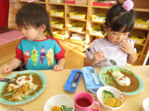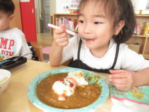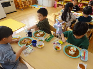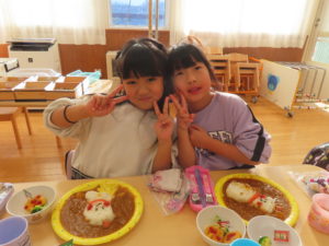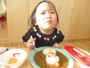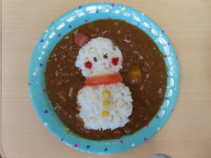 メインは、雪だるまカレーライスとサンタのケーキ!