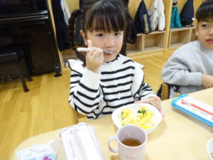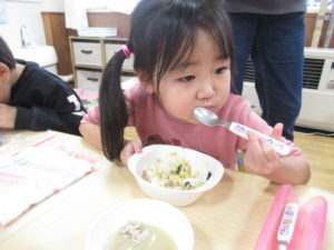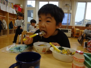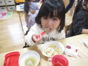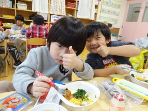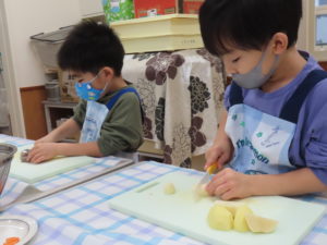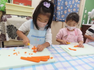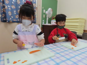 そして、今日のご飯は年長組のみんなが材料を切るのをお手伝いしてくれました!