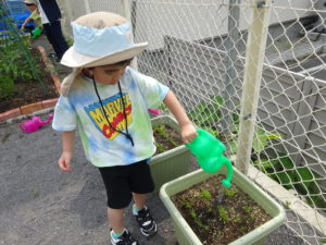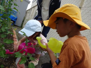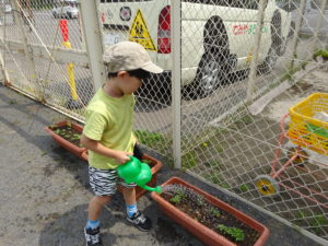 外に出てすぐにみんながしたのは、野菜たちの水やり(*^^*)