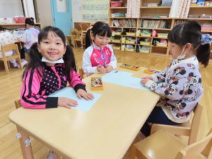 月曜日♪ 日付:2023/12/04 こんにちは!小樽の手宮幼稚園です(*^^*) 今日からまた一週間が始まりました! 自由遊びの時間はホールで大きな家を作ったり、お絵描きや粘土、年長さんはラキューをして楽しんでいるお友だちもいました(*^-^*) 自由遊びが終わってからは年中長はページェント、年少はクリスマスの歌・楽器の練習をしましたよ♪年少は練習の後にみんなで楽しく椅子取りゲームをして遊びました!!