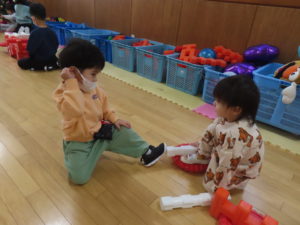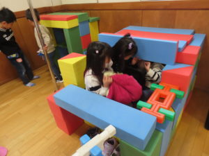 お友だちとブロックで大きなお家を作って楽しんでいた子どもたち(*^^*)