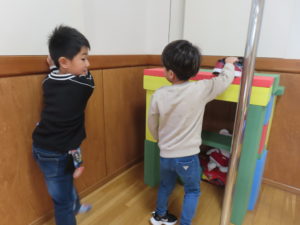 ぬいぐるみや小さいブロックもお家の中に入れて「本当のお部屋みたーい♡」とニコニコでした!