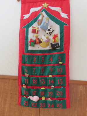 園長先生のお話を聞いて、みんなでクリスマスが近づくのを楽しみにしています。